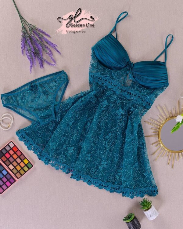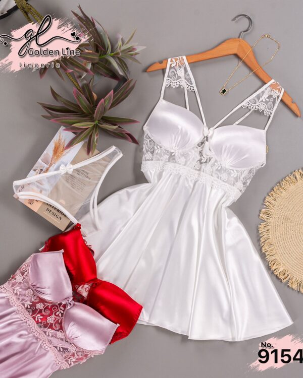 قميص نوم ساتان و تول مع جبير موديل 9120