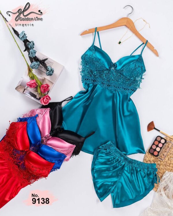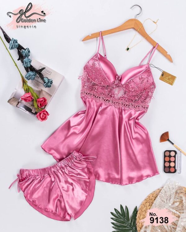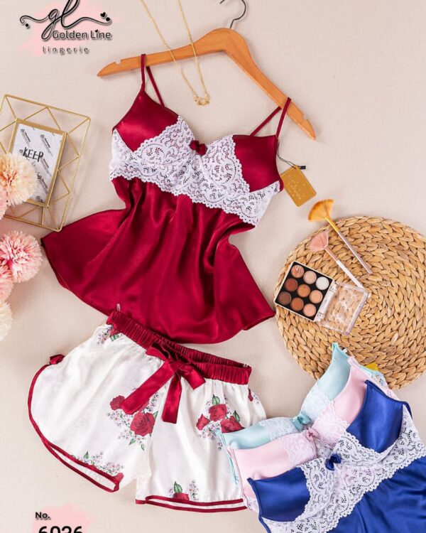 بيجامة ساتان قطعتيم موديل 6034