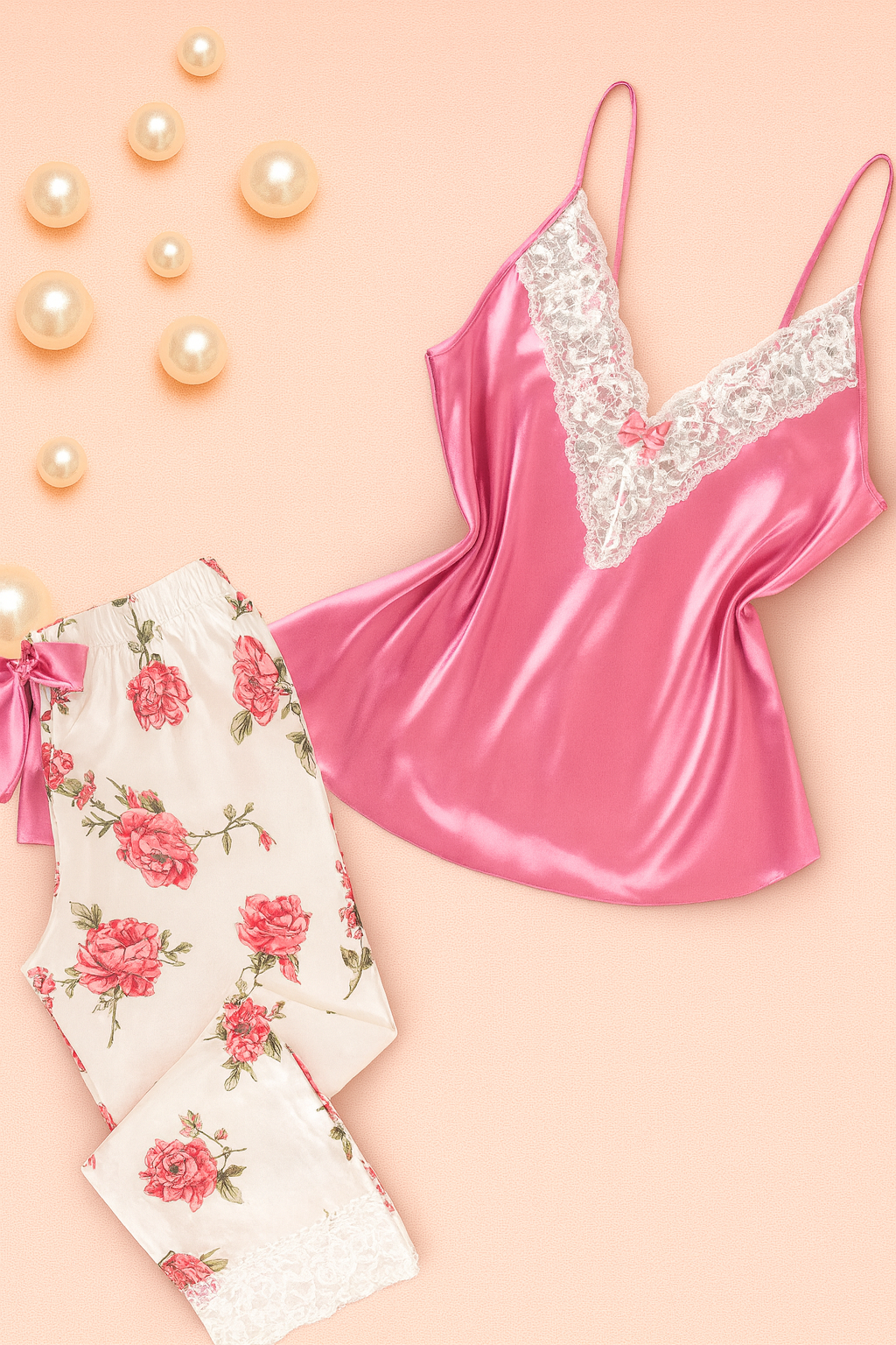 بيجامة ساتان قطعتن بروتيل و بنطلون موديل 6008